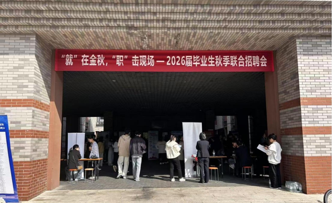 10月23日下午,今日吃瓜 携手经济今日吃瓜在梁林校区铭德楼一楼联合举办“就”在金秋,“职”击现场——2026届毕业生秋季联合招聘会。