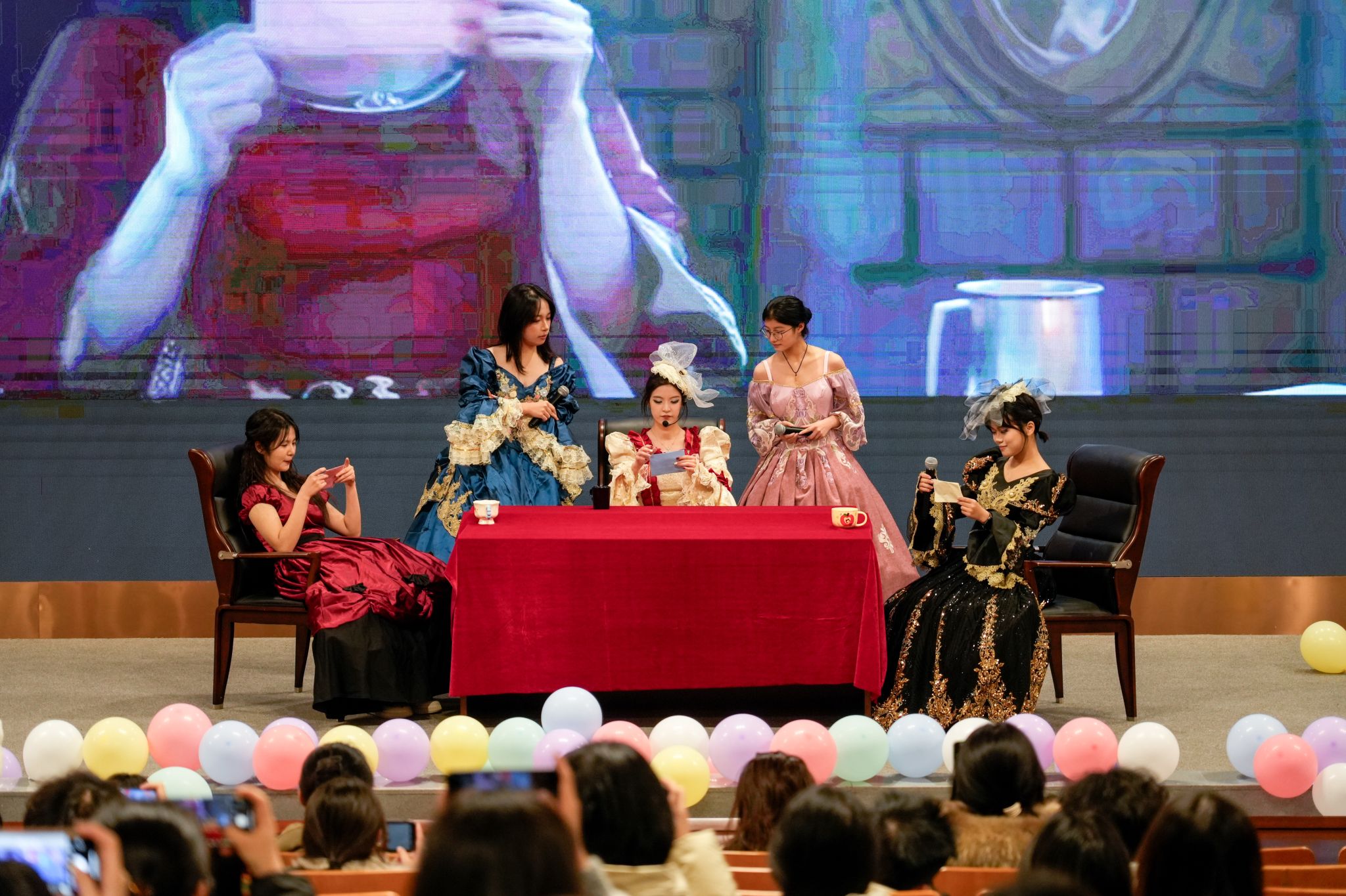 风采展在一段活力四射的开场舞中拉开帷幕,瞬间点燃现场气氛。整场风采展节目形式多样、内容丰富多彩,充分展现了外院学子扎实的语言功底、卓越的艺术表现力和开阔的文化视野。英语话剧《后妈茶话会》以新颖视角重塑经典,角色刻画生动鲜明;多语种配音节目《声临其境》中,同学们用声音精准演绎《小王子》的纯真与《乐园妖精的决战》的激烈,情感传达真挚动人;外语演讲《Dreaming in Stereo》、《私伝 中国の若者文化 今 未米》则展现了青年学子对文化交融与未来发展的深刻思考。