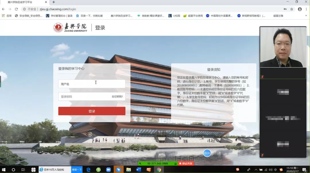 2月17日下午,丁建良老师指导老师们如何利用“超星”和“微助教”组织在线教学和教学评价。丁老师用实时互动的形式,向老师们演示了从新建课程、组织课堂、上传和调用课件,到学生成绩管理等完整流程和操作步骤,对其中的每一个环节都做了细致讲解,并分享了自己在使用这两个软件过程中遇到的问题和解决方法,提出了宝贵的建议。