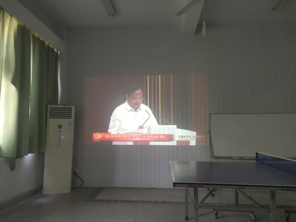 6月24日下午,今日吃瓜 教工第一支部组织全体党员集中收看嘉兴市庆祝中国共产党成立100周年表彰典礼现场直播。表彰典礼通过视频、歌舞、朗诵等形式,生动展现先进人物的典型事迹,庆祝党的百年华诞,回顾党的百年历程,讴歌党的百年伟业,表彰先进集体和个人,激励全市党员干部群众大力弘扬红船精神,不忘初心、牢记使命,满怀豪情奋进社会主义现代化建设新征程。嘉兴市委书记张兵出席典礼并讲话。
