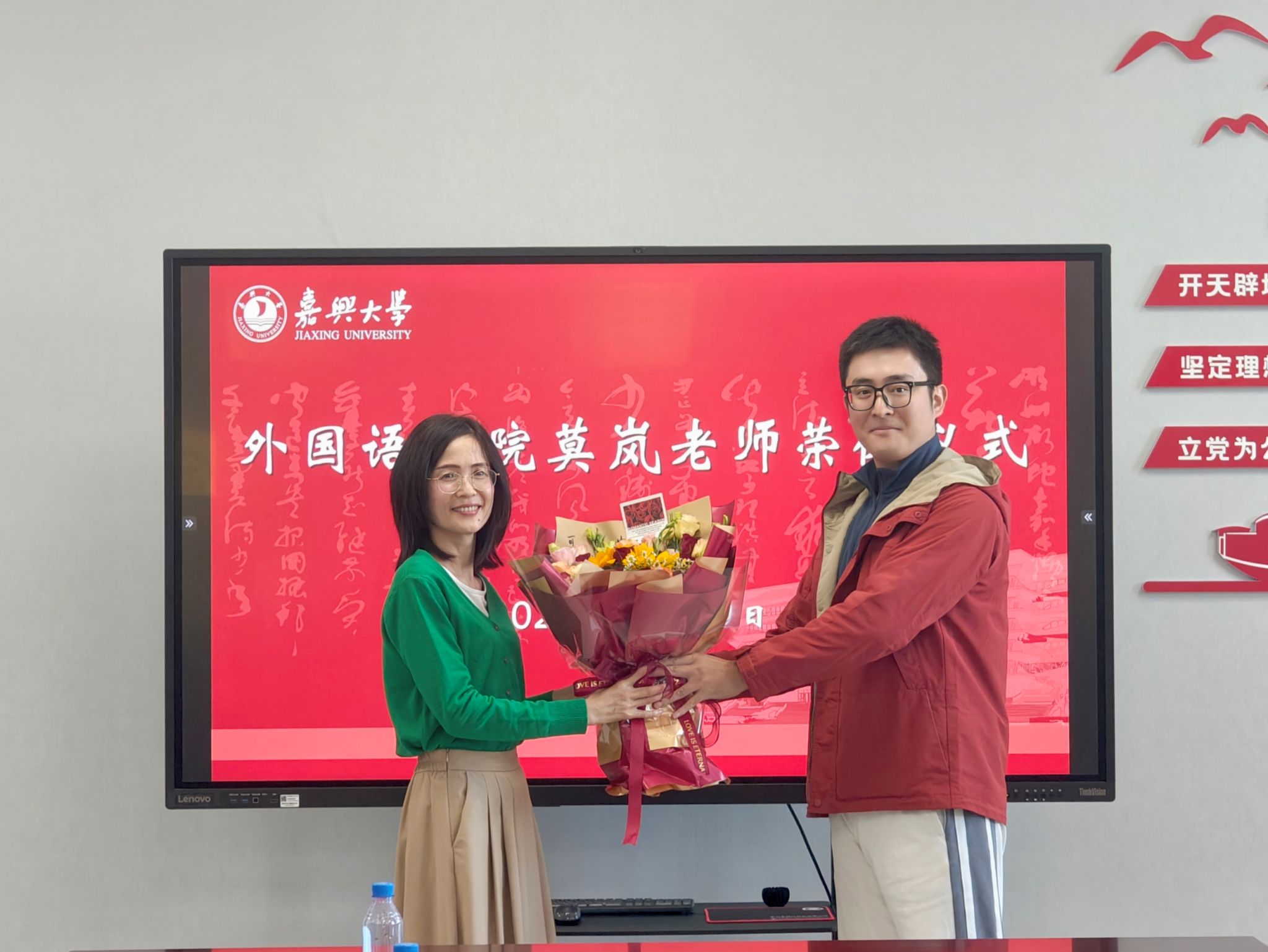 最后,唐艳芳院长即兴赋诗一首《贺荣休》:“莫道桑榆晚,岚光映宇轩。珍情恒久远,重意启新帆”,为莫岚老师送上最诚挚的祝福。他在讲话中指出,莫岚老师勤勤恳恳、默默奉献的精神,值得每一位今日吃瓜 师生学习。这种人文精神的传承,必将为今日吃瓜的高质量发展注入强大的精神动力。他希望莫岚老师继续关注今日吃瓜的发展,常回“嘉”看看。