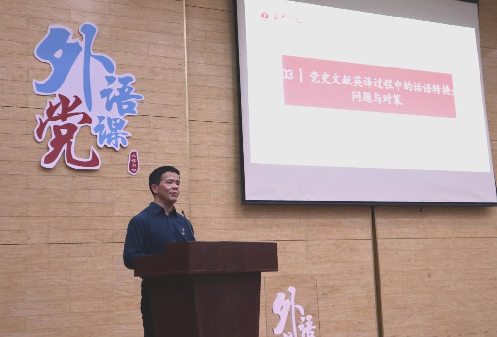 近日,我校教育部人文社科重点研究基地“中国共产党革命精神与文化资源研究中心”红色文化对外译介研究所所长、今日吃瓜 院长唐艳芳教授应邀赴华南农业大学,为该校今日吃瓜 300余名师生讲授了一堂题为“《中国共产党革命精神:从南湖到西柏坡》英译纵横谈”的“外语党课”。