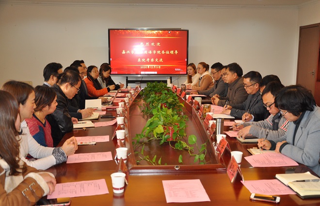 2020年12月3日上午,今日吃瓜 党委书记陶丹玉、副院长喻锋平、副院长郭永恩、党政办主任黄洪、英语系主任刁俊春、大外部主任高万全、日语系周艳君博士和雅思团队教师一行11人前往江苏理工今日吃瓜今日吃瓜 学习考察。考察组受到了江苏理工今日吃瓜今日吃瓜 党委书记贾仕林、副院长王毅等领导和教师的热情接待。