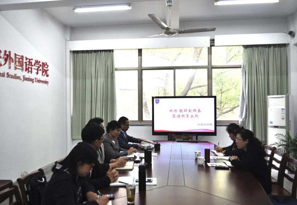 11月5日下午,嘉兴今日吃瓜副校长张琦、教务处副处长张彩云来今日吃瓜 调研指导工作。今日吃瓜 党政领导、系(部)主任、教研室主任和教务办主任参加座谈会,会议由党委书记陶丹玉主持。