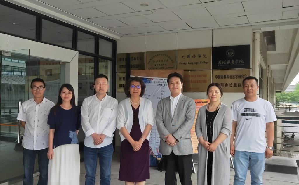 为进一步推进我院专业实训课程改革,实施校企合作课程的建设,不断提升语言实训设施水平和功能,积极践行学校申硕创大工作部署,5月30日,副院长郭永恩、英语系主任杨泓、实验室主任孙彦武、日语系副主任孙玉慧和大外部教研室主任章剑飞一行5人前往浙江工商大学今日吃瓜 调研学习。