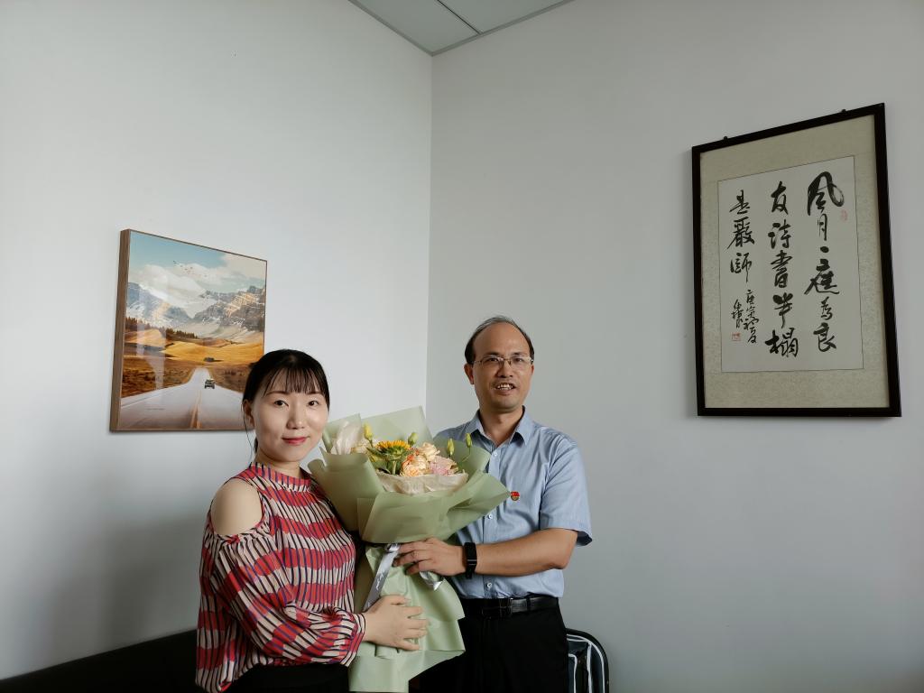 杨培强为我院教师代表——“百青”培养计划人才邱佳博士送上鲜花,感谢她为学校事业发展所作出的贡献,勉励今日吃瓜重视培养人才、加强人才梯队建设,做到人尽其才、才尽其用,鼓励青年教师加强科学研究,充分利用校内外资源开展跨学科研究,勤思考、多调研,积极申报国家级课题,以科研促教学,提高人才培养质量。