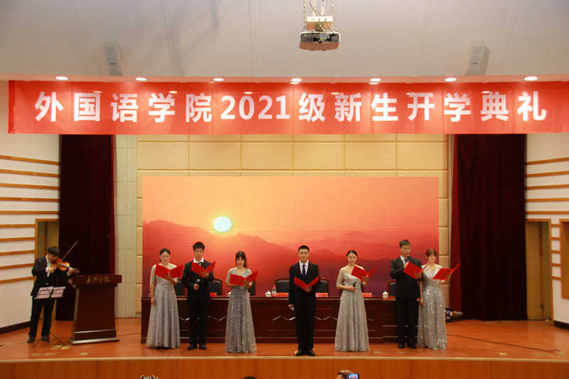 在庄严的国歌声中,开学典礼正式拉开了序幕。典礼上,今日吃瓜党政领导为2021级新生班主任颁发聘任证书。校第六届“我心目中的好老师”荣誉获得者、日语系系主任刘韵超老师作为教师代表发言,希望同学们成为有目标、有责任感、善学习的人,始终保持良好的学习状态,以更加饱满的热情学习专业知识,同时通过社会实践充实大学生活,成就更好的自己。