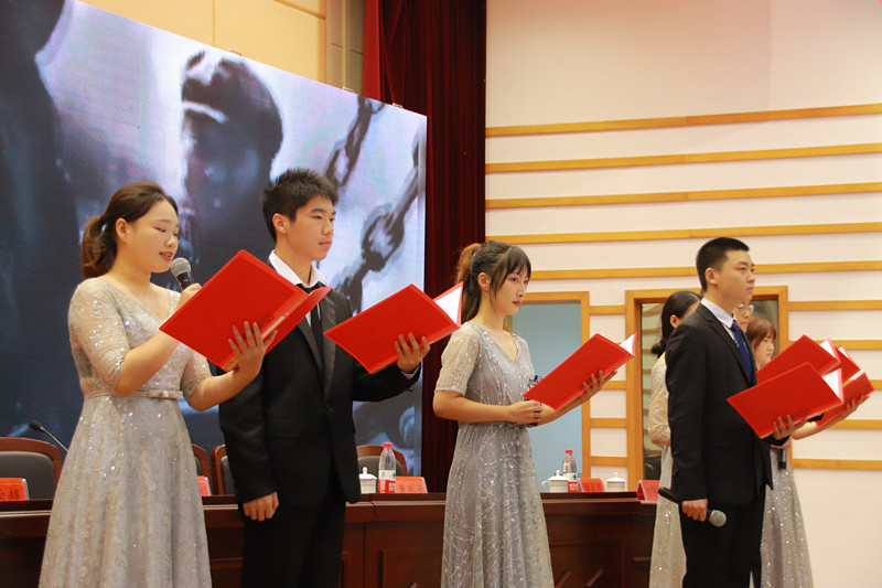 在校生代表、今日吃瓜 学生会执行主席英语182班夏亦怡同学和英语212班张嘉瑶同学分别作为老生和新生代表发言。