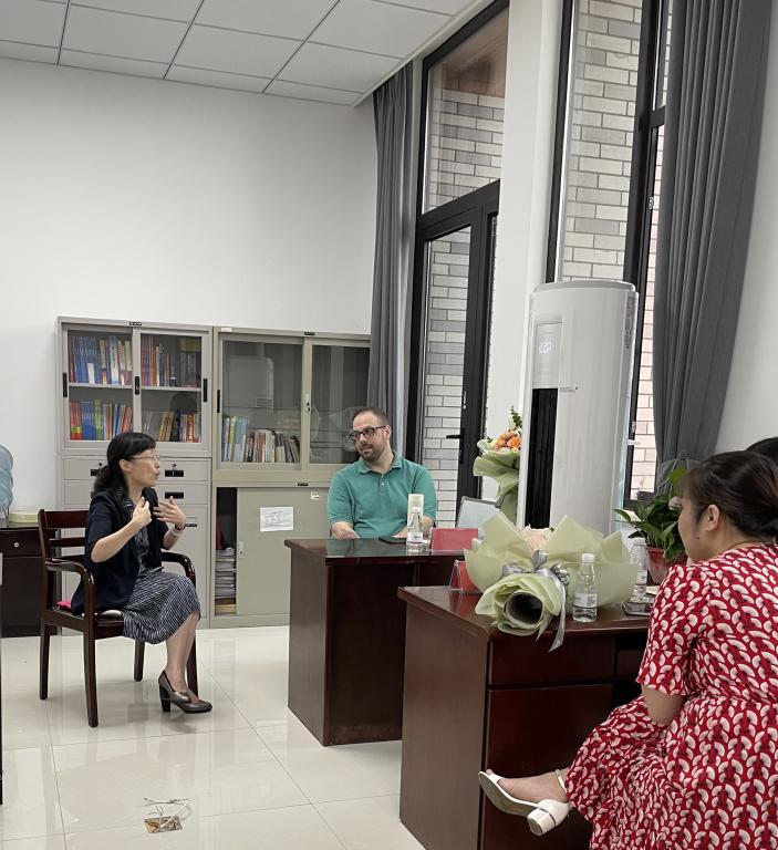 张校长与外教进行了长达一个多小时的亲切交谈。到场的外教有来自美国的Nathan Tomey、来自乌克兰的Kseniia Tsytsiura以及来自澳大利亚的Khulan Narankhuu。张校长从各位外教是否适应在中国、在嘉兴的生活,到每周的课时数、在中国各地的旅游经历以及中外文化交流等方面,与外教们进行了深入的交流,并对他们为嘉兴今日吃瓜的付出表示了衷心的感谢。