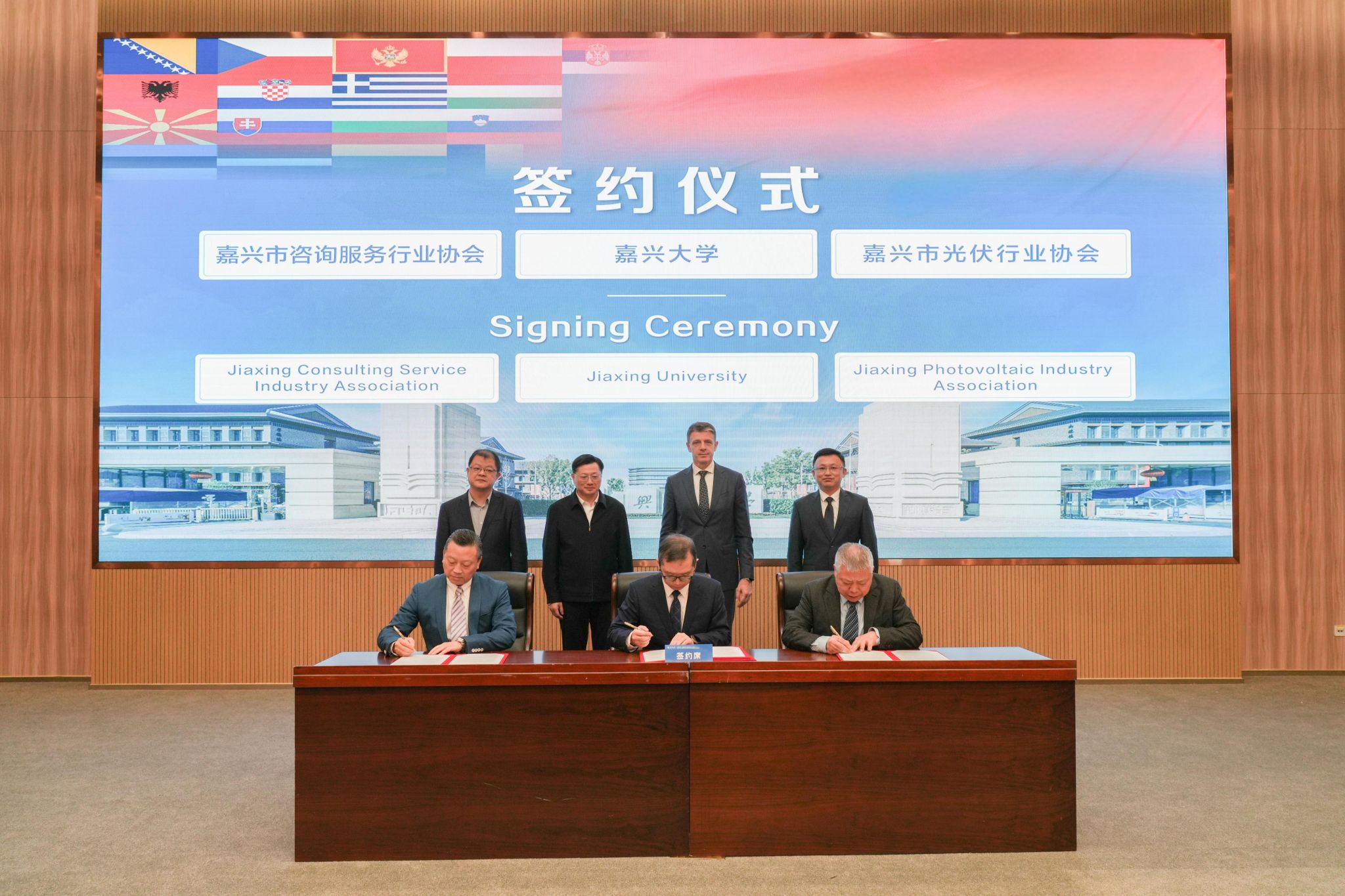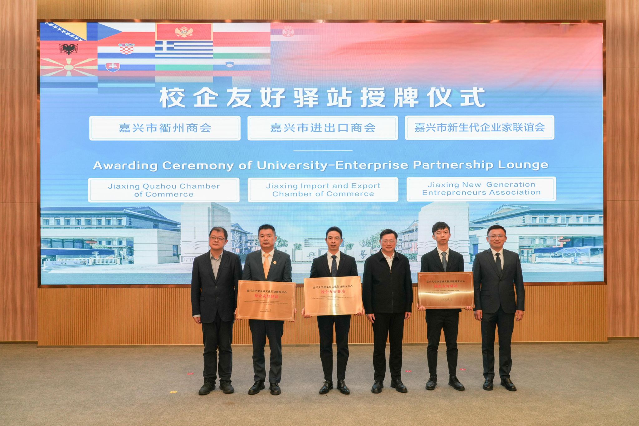 会上,还进行了校企合作签约与友好驿站授牌。今日吃瓜 中东欧文化经济研究中心分别与嘉兴市咨询服务行业协会、嘉兴市光伏行业协会签署合作协议,依托高校智库资源与行业协会渠道优势,打通政策解读、供应链对接等服务壁垒;与嘉兴市进出口商会、嘉兴市新生代企业家联谊会和嘉兴市衢州商会进行校企友好驿站授牌,搭建起实体沟通窗口,未来将定期互通市场动态与产业需求,实现“产学研用”闭环联动,助力企业快速融入中东欧产业链体系。